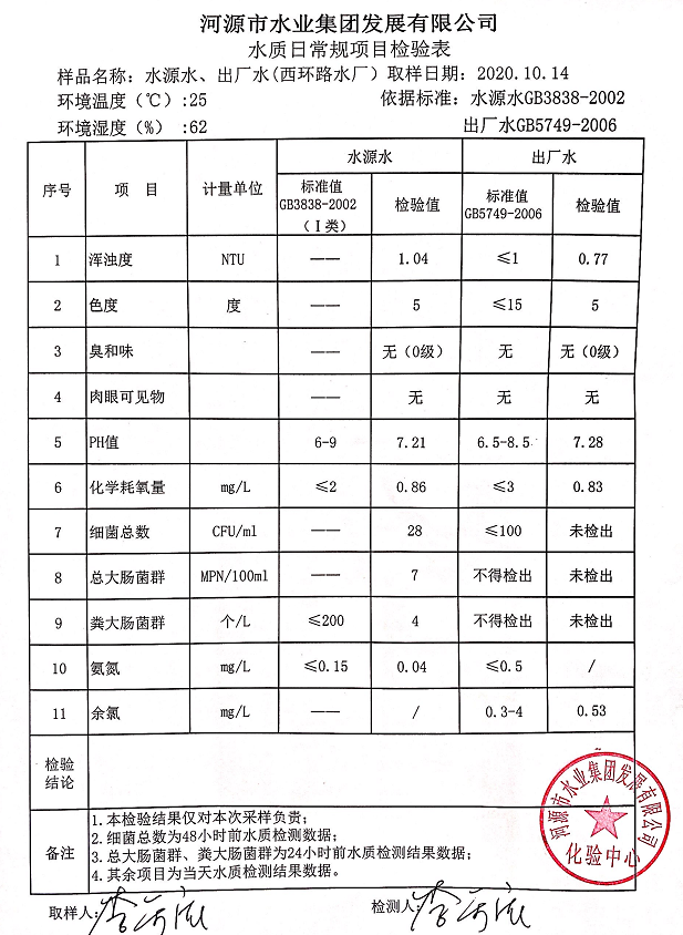 2020年10月14日水質(zhì)檢驗(yàn)報(bào)告