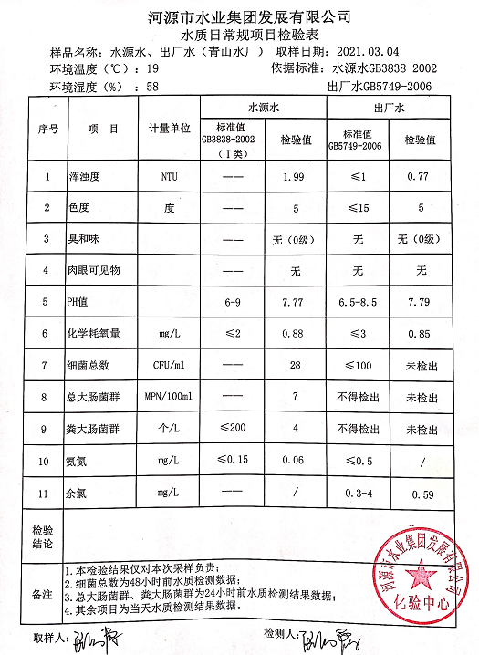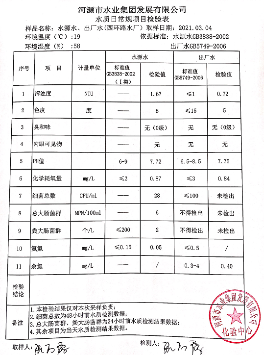 2021年3月4日水質(zhì)檢驗(yàn)報(bào)告