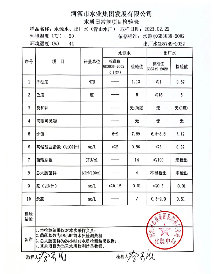 2023年2月22日水質(zhì)檢驗報告
