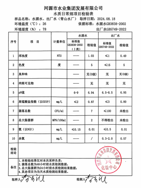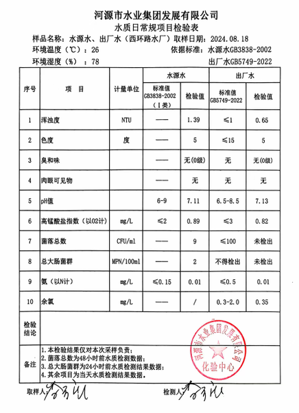 2024年8月18日水質(zhì)檢驗(yàn)報(bào)告