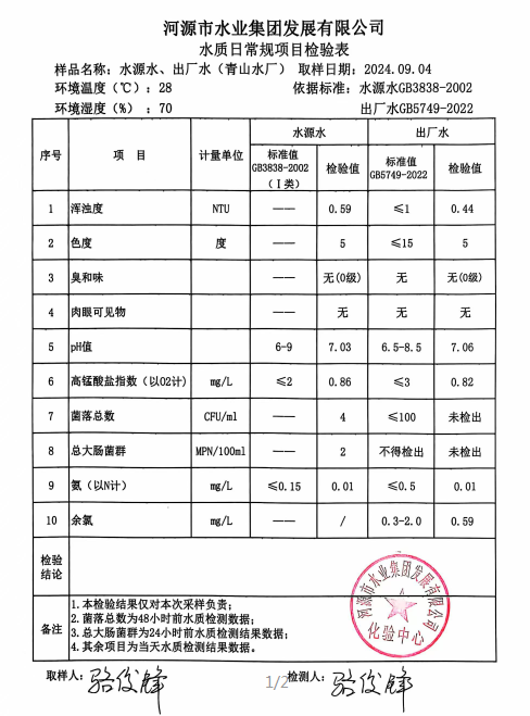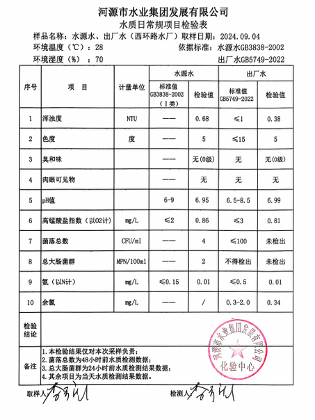 2024年9月4日水質(zhì)檢驗報告