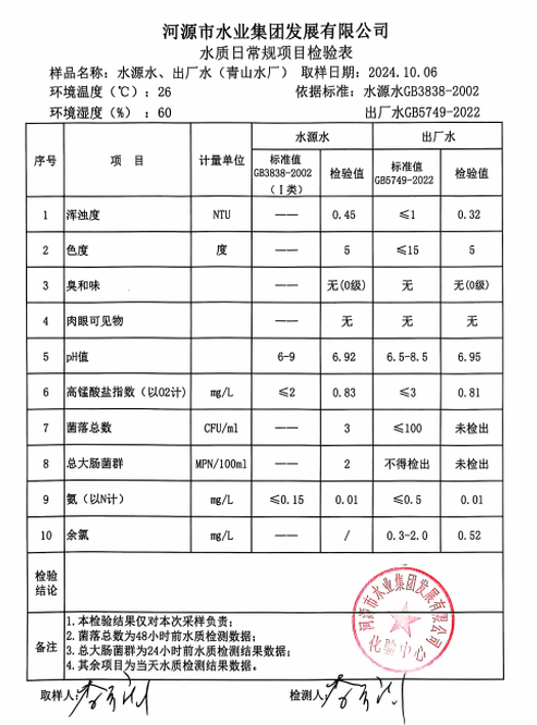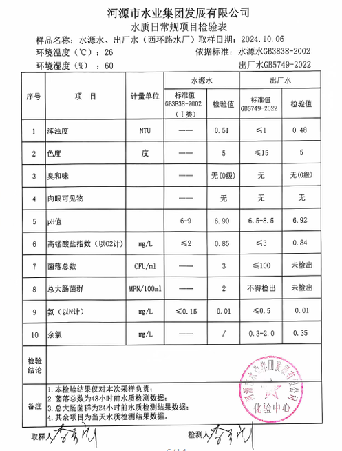 2024年10月6日水質(zhì)檢驗(yàn)報(bào)告
